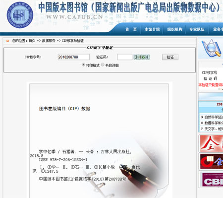 《学中忆季》中国版本图书馆(国家新闻出版广电总局CIP数据)截图,查询网址: