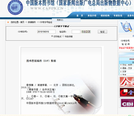 《春柳集》中国版本图书馆(国家新闻出版广电总局CIP数据)截图,查询网址: