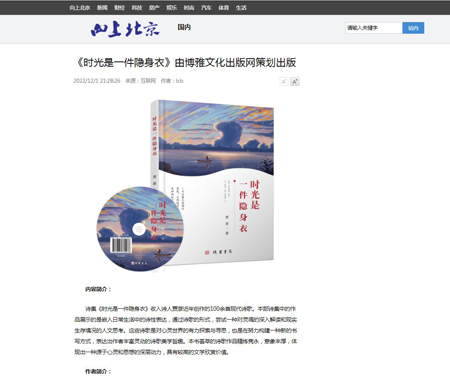 上海在线、上海视窗、腾讯网新闻客户端、向上北京等各大网站推荐本社新书《时光是一件隐身衣》